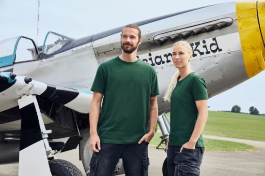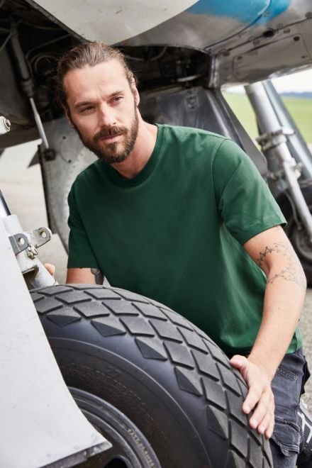Sonnenschutz gemäß Hitzeschutzverordnung • Baumwoll-Stretch T-Shirt mit UV-Schutz UPF 50+ • Rundhalsausschnitt • Nackenband • Bündchen am Hals • bei 40° Grad waschbar • trocknergeeignet bei niedriger Temperatur