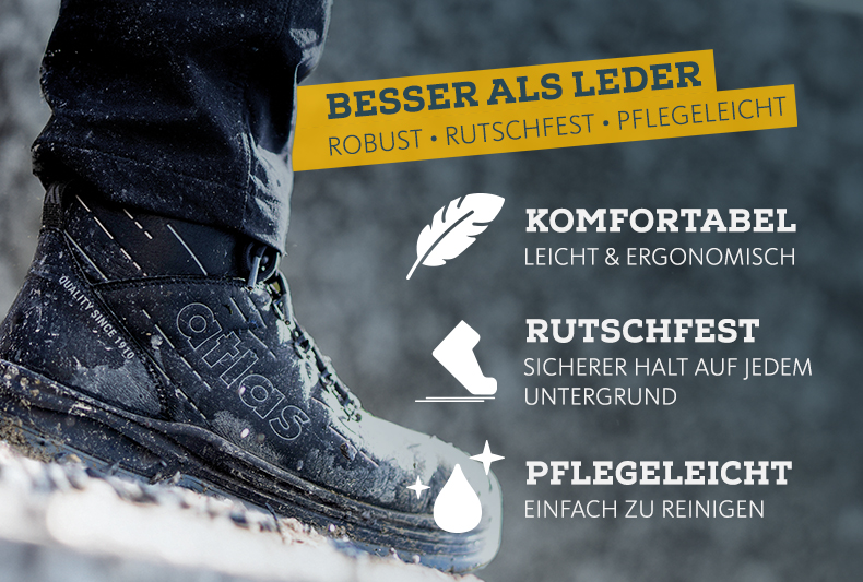 Dass Sicherheitsschuhe heute auch anders gedacht werden können, zeigt der neue Schuh von Atlas®. Moderne Materialien ersetzen Leder dort, wo es im Arbeitsalltag an Grenzen stößt.