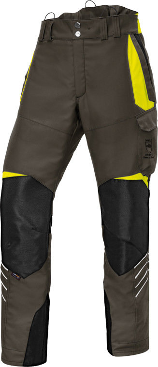 Reflex-Elemente im "Shark"-Design und auffallende Kontrasteinsätze in Warngelb machen den Träger leichter erkennbar • robuster Oberstoff, angenehmes Mesh-Innenfutter • hochgezogener Nierenschutz • Befestigungsmöglichkeit für Hosenträger • Ventilationseinsätze aus Softshell und Mesh oberhalb der Kniekehlen für optimalen Temperaturausgleich • CORDURA®-Verstärkungen im Saum- und Kniebereich der Hose schützen vor Scheuerbeschädigungen • glatte Gewebeoberfläche vermindert die Schmutzanhaftung • ergonomisch gestaltete Hosenbeine und elastischer Bundeinsatz für maximale Bewegungsfreiheit • integrierte Gamasche aus Mesh als Schmutz- und Insektenschutz • vielseitige Taschenlösungen: 2 Seitentaschen mit Reißverschluss, rechts: Gesäßtasche mit Reißverschluss, Patte und Druckknöpfen, Meterstabtasche aus CORDURA® mit Öffnung für Motorsägen-Schlüssel, links: Schenkeltasche mit Patte und Druckknöpfen • Belastungspunkte mit Riegeln gesichert • OEKO-TEX® Standard 100 zertifiziert • ausgezeichnet mit dem FPA "KWF-STANDARD"-Label