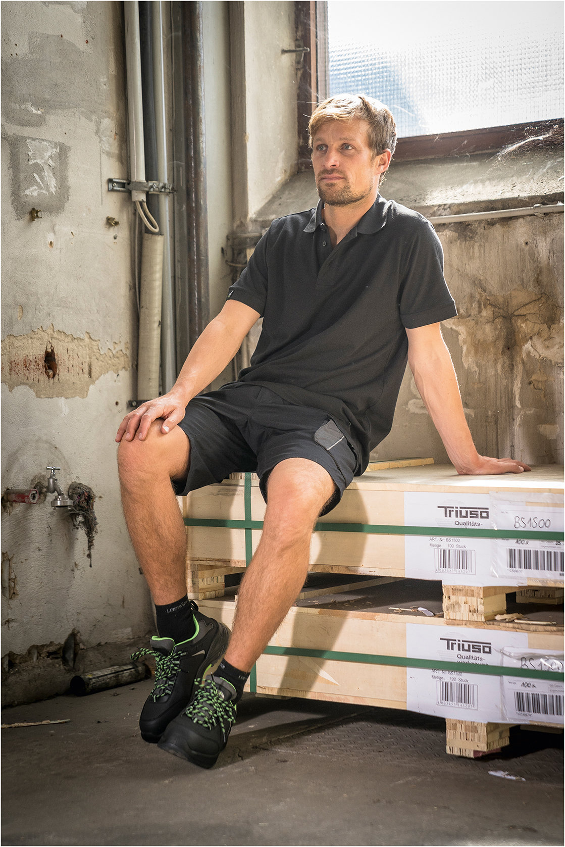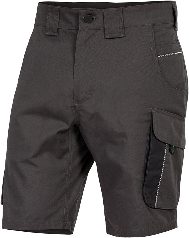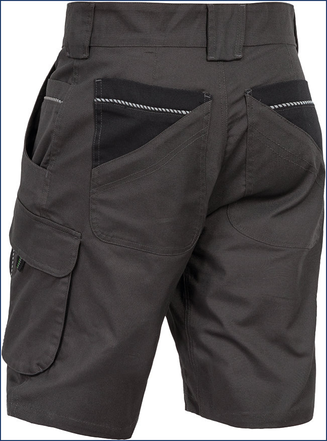 Leibwächter® Stretch Shorts DynamicLine • 2-Nadel-Steppnähte • Reflexpaspel an den Taschen • Patten mit Reißverschluss • 5 breite Gürtelschlaufen • 2 Eingriffstaschen mit 2 kleinen Taschen • 2 Gesäßtaschen mit Zierstepp • Maßstabtasche inkl. 2 Stiftfächer am rechten Bein • Cargotasche am linken Bein